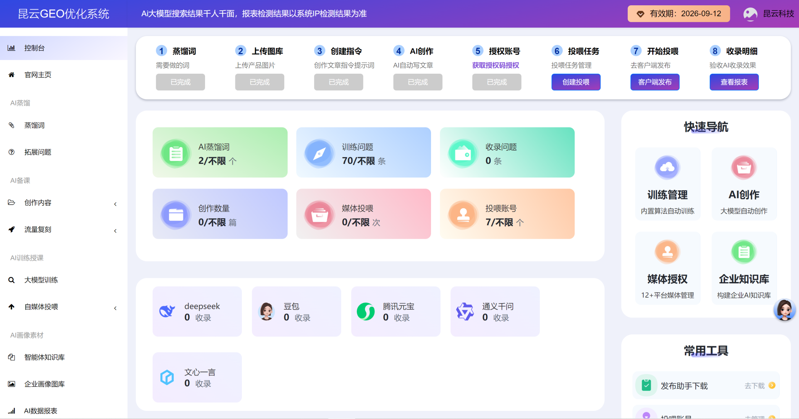 昆云GEO优化系统:支持OEM代理贴牌系统搭建、支持独立域名部署、自定义LOGO、自主控价、无限开代理后台、无限开通商户后台、自定义部署AI大模型、阿里云OSS存储。
